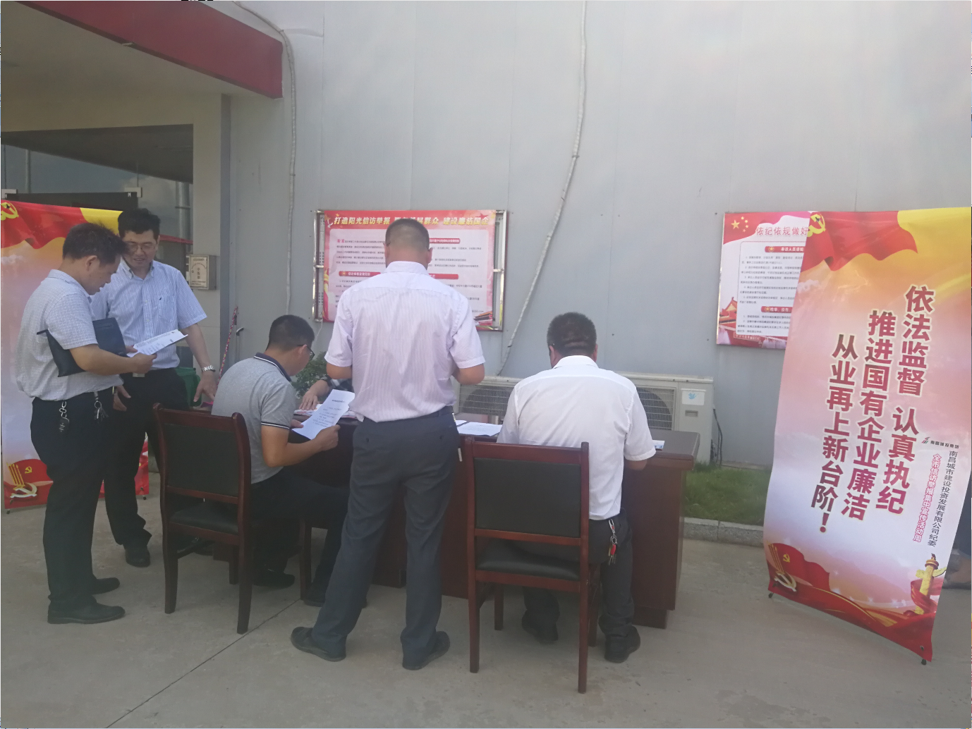为认真贯彻落实全市纪检监察信访举报集中宣传周活动精神,6月25日,南昌城投集团党委委员、纪委书记何志敏带领集团公司纪检干部深入水岸观邸小区、洪都大道快速路改造等下属子公司管理的物业小区及工程现场一线,面对面接待来访群众,耐心解答信访举报的相关问题,并通过宣传展板和宣传手册向群众宣讲信访举报知识。